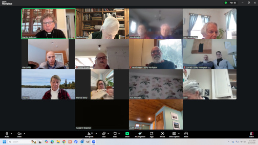 The Rev Marilyn Anderson led a service of prayer via Zoom Sunday morning at 10:30, and what you see above is a screen shot of the Zoom window (those attending via phone not included). We were delighted to welcome five members of Trinity Torrington today!